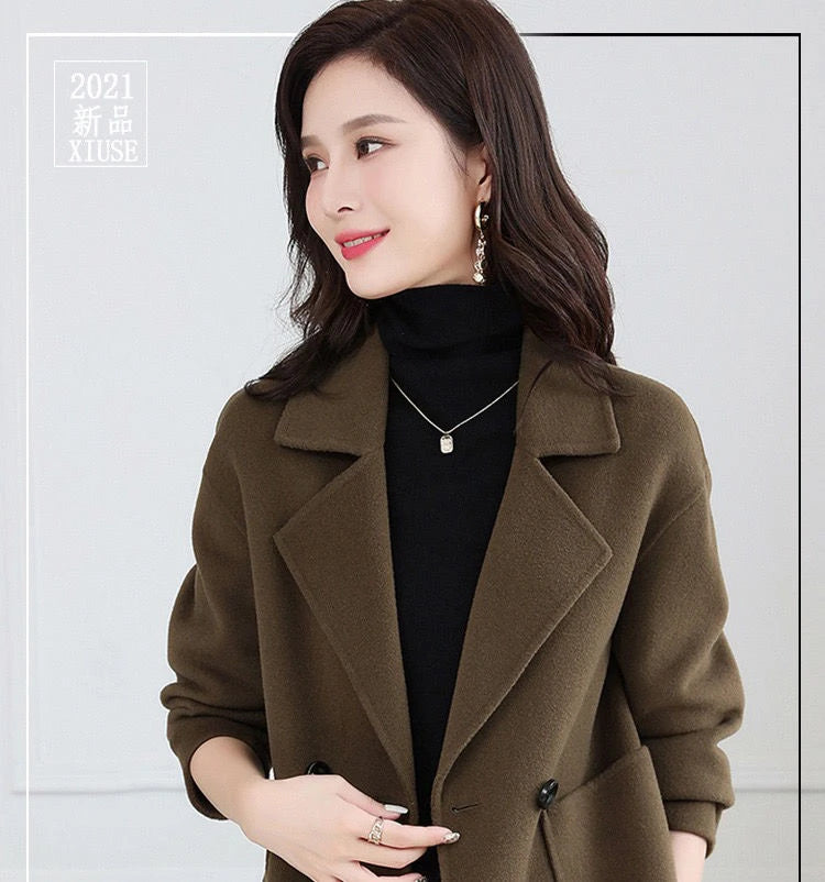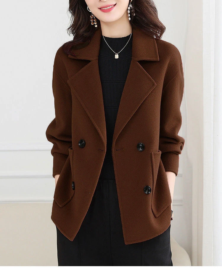 Chic & Versatile – Women's Double-Breasted Wool Coat 2025
